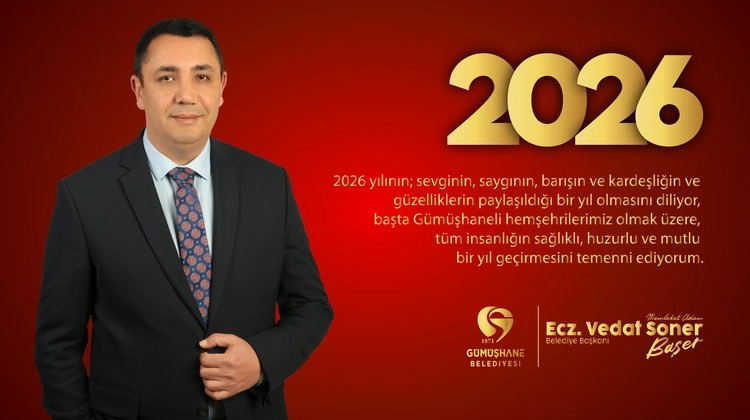 Gümüşhane Belediye Başkanı, 2026 yılına ilişkin mesajında, yeni yılın kente ve tüm vatandaşlara sağlık, huzur ve başarı getirmesini diledi.