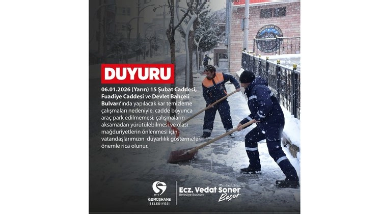 05 Ocak 2026, Pazartesi Gümüşhane Belediyesi, 5 Ocak 2026 Pazartesi gününe ait bir duyuru yayımladı. Gümüşhane,Gümüşhane Belediyesi
