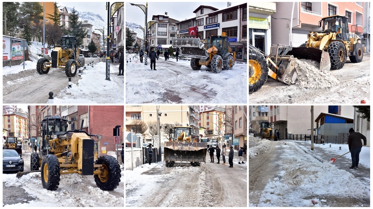 Gümüşhane Belediyesi, etkili olan kar yağışına karşı şehir genelinde ekipleriyle aralıksız çalışma yürütüyor.