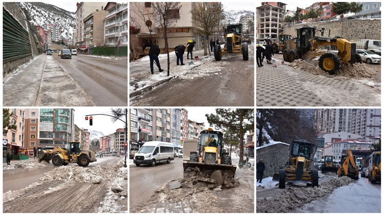Gümüşhane Belediyesi, kış mevsiminin etkili olduğu bölgede kar ve buzla mücadele çalışmalarını kesintisiz devam ettiriyor.