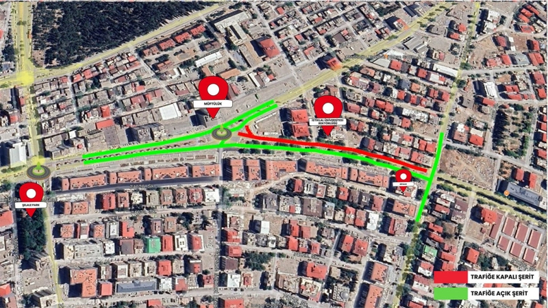 Kahramanmaraş Büyükşehir Belediyesi, Cumhuriyet Bulvarı'nın Kahramanmaraş Müftülüğü istikametindeki bölümünün 23 Aralık 2025 ile 3 Ocak 2026 tarihleri arasında araç trafiğine kapalı olacağını duyurdu.