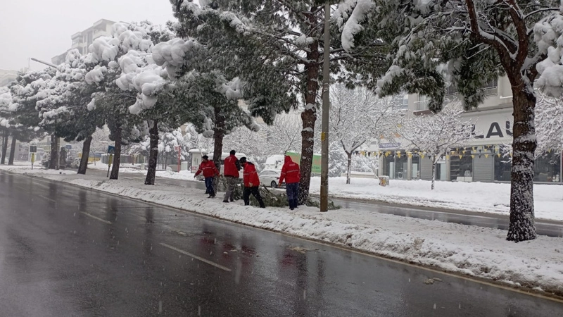 Kent Estetiği ve Yeşil Alanlar Dairesi Başkanlığı ekipleri, özellikle şehir merkezinde kar yağışı neticesinde kırılan ağaç dallarını titizlikle topluyor. Bu çalışmalarla yaya ve araç güvenliğini tehdit edebilecek olumsuzlukların önüne geçiliyor.