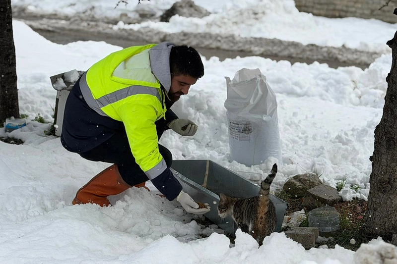Karabük'te etkili olan soğuk hava koşulları nedeniyle Karabük Belediyesi, sokak hayvanlarına yönelik beslenme çalışmalarını sürdürüyor. Belediye ekipleri, kent genelinde belirlenen noktalara mama bırakıyor.