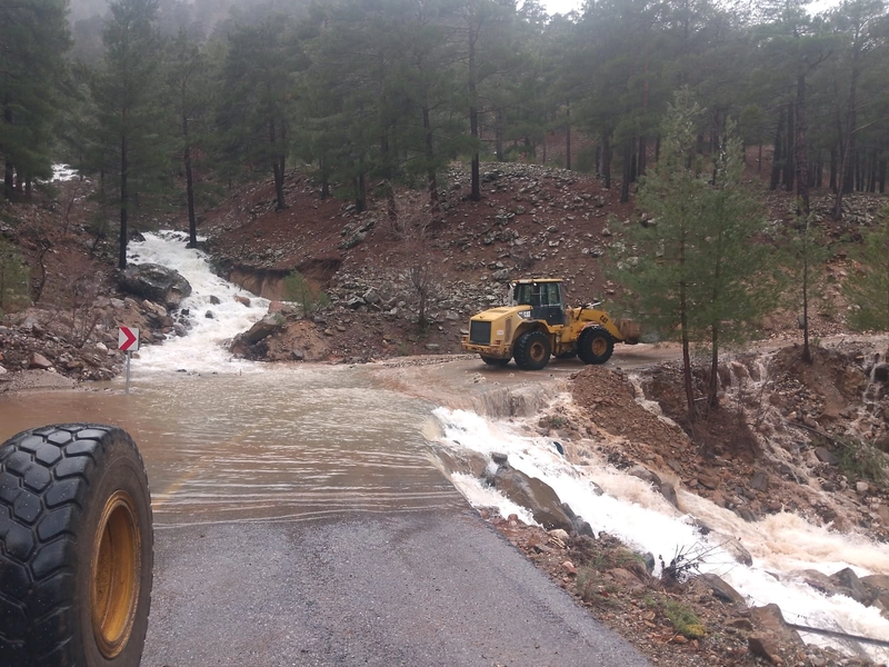 Kırsal Hizmetler Daire Başkanlığı ekipleri, Büyükşehir Belediye Başkanı Dr. Memduh Büyükkılıç'ın talimatıyla sahaya intikal etti. Ekipler, trafik ve can güvenliğini sağlamak, riskli alanlarda tedbir almak ve ulaşımı kesintisiz kılmak için yoğun mesai harcadı.