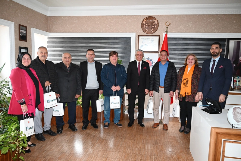 Kemer bölgesindeki muhtarlar, Belediye Başkanı Necati Topaloğlu ve Başkan Vekili Cansın Efir'i ziyaret ederek yeni yılını kutladı ve mahallelere yapılan hizmetler için teşekkür etti.