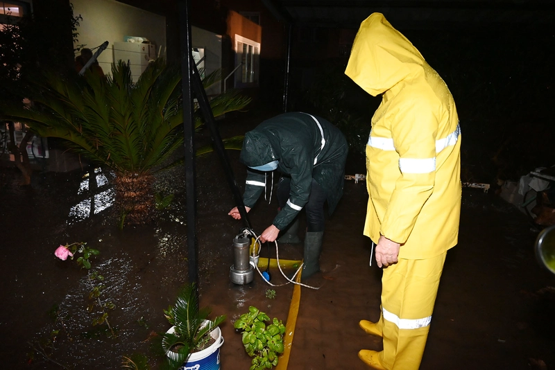 Meteorolojinin uyarısının ardından Kemer'de etkili olan sağanak, su taşkınlarına neden oldu. Belediye Başkanı Necati Topaloğlu, sahada ekipleri yönlendirirken, mahsur kalan vatandaşların kurtarılmasında da görev aldı.