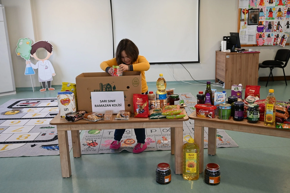 Kemer Belediyesi Ülker-Orduvar Akman Kreş ve Gündüz Bakımevi öğrencileri, evlerinden getirdikleri gıdalarla hazırladıkları ramazan kolilerini ihtiyaç sahibi ailelere ulaştırıyor.