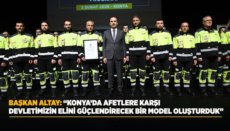 Başkan Altay, Konya Büyükşehir Belediyesi'nin hafif, orta ve ağır seviye kentsel arama ve kurtarma akreditasyonunun üçünü birden alan ilk yerel yönetim olduğunu açıkladı. Konya'da kurulan bu yapının, afetlere karşı devletin elini güçlendirecek bir model niteliği taşıdığını ifade etti. 6 Şubat 2023 depremlerinde yaşanan derin acıya değinen Altay, aynı gün milletin merhamet, fedakarlık ve dayanışma ruhunun da ortaya çıktığını söyledi.