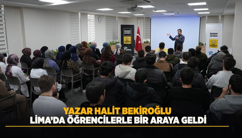 Konya Büyükşehir Belediyesi Lise Medeniyet Akademileri'nde (LİMA) düzenlenen 'Düşünce Mola' başlıklı söyleşide yazar Halit Bekiroğlu, öğrencilerle buluşarak düşünmenin ve anlam arayışının önemini ele aldı.